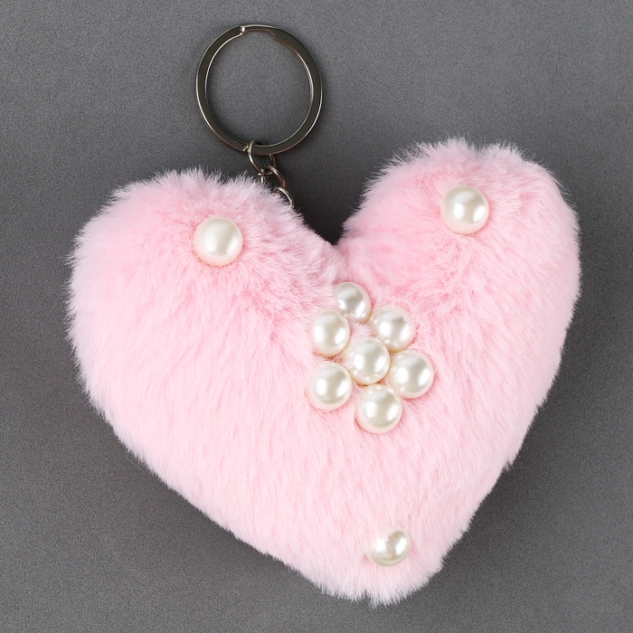 Мягкая игрушка «Сердечко» с бусинами, на брелоке, 10 см, цвет нежно-розовый