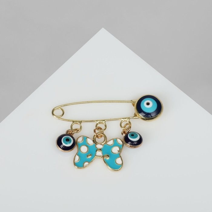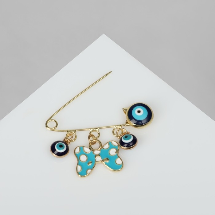 Булавка-оберег «Глазки» с подвесками, 5 см, цветная в золоте