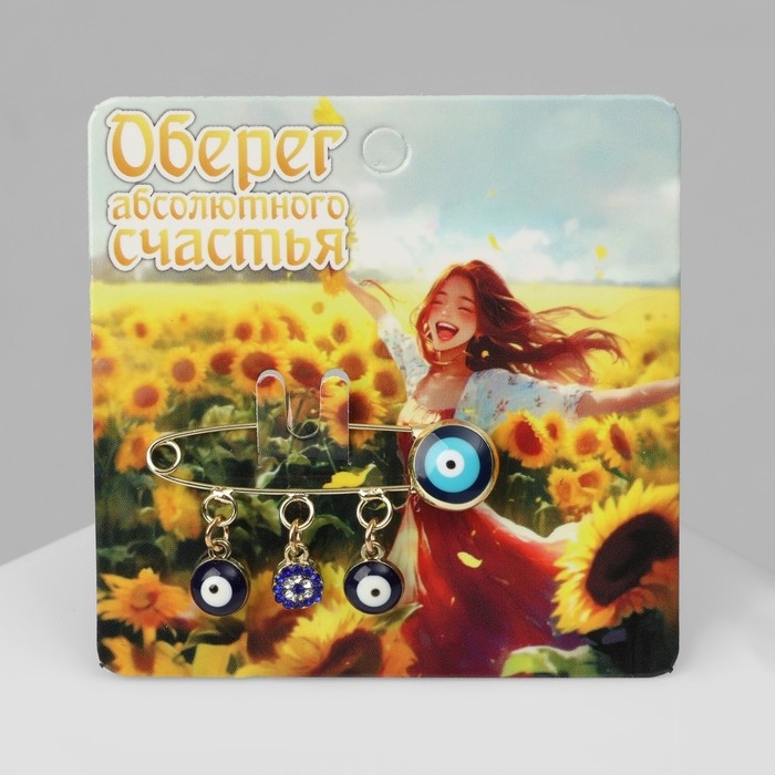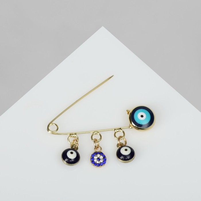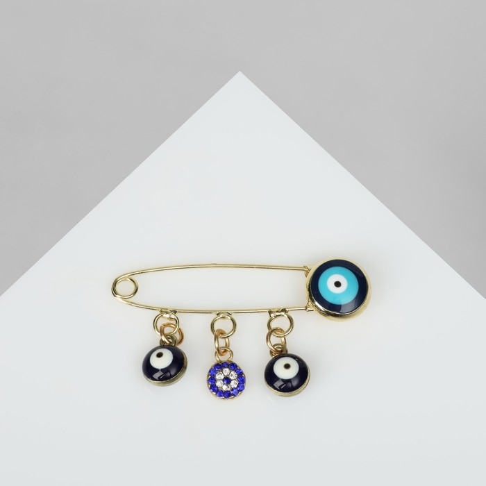 Булавка-оберег «Глазки» с подвесками, 5 см, цветная в золоте