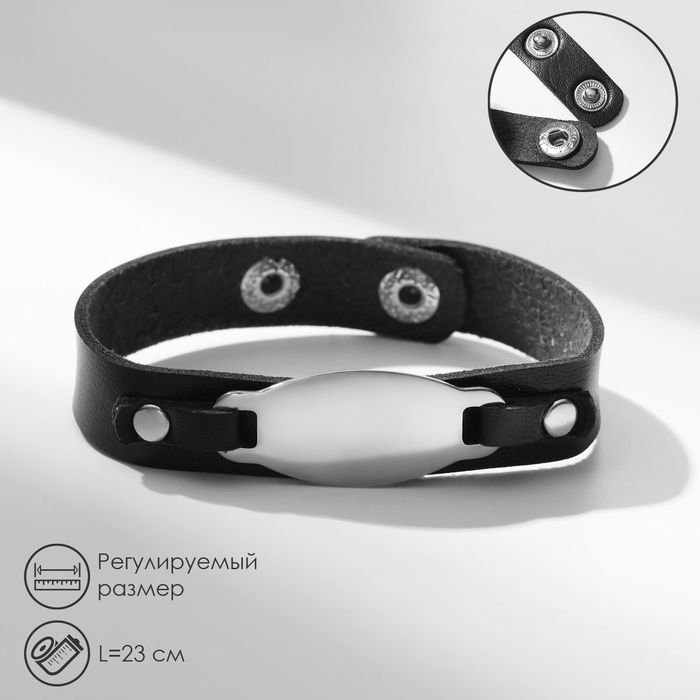 Браслет кожа «Пластина», цвет серебряно-чёрный, 23 см