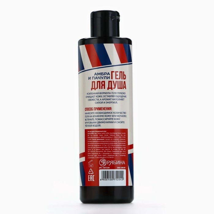 Гель для душа, 250 мл, аромат амбры и пачули, HARD LINE