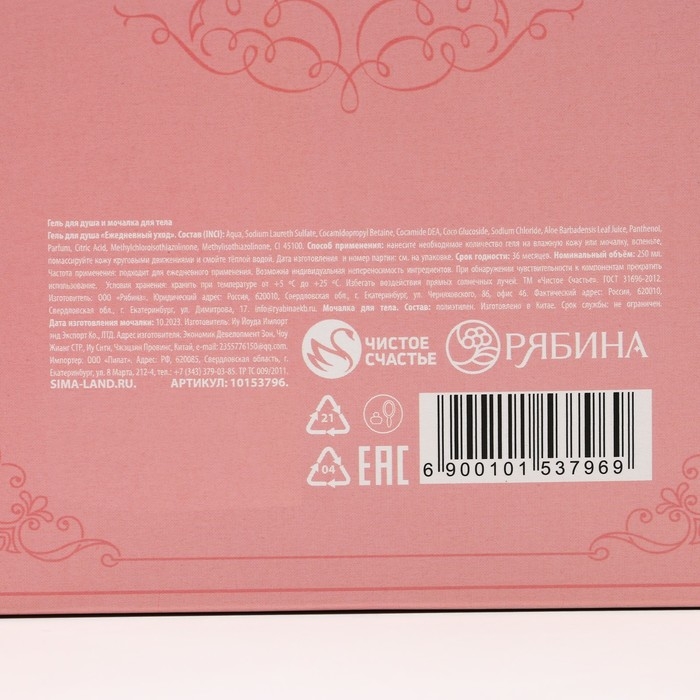 Подарочный набор косметики «Сказочная забота», гель для душа 250 мл и мочалка для тела, ЧИСТОЕ СЧАСТЬЕ