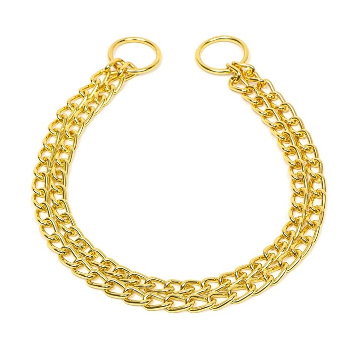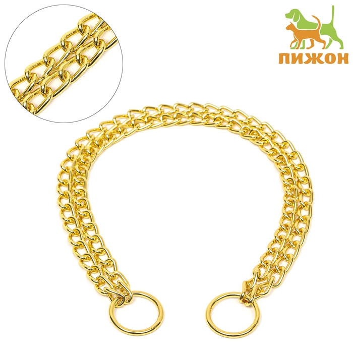 Ошейник - удавка металлический двухрядный, 45 см, толщина проволоки 2 мм, золотистый