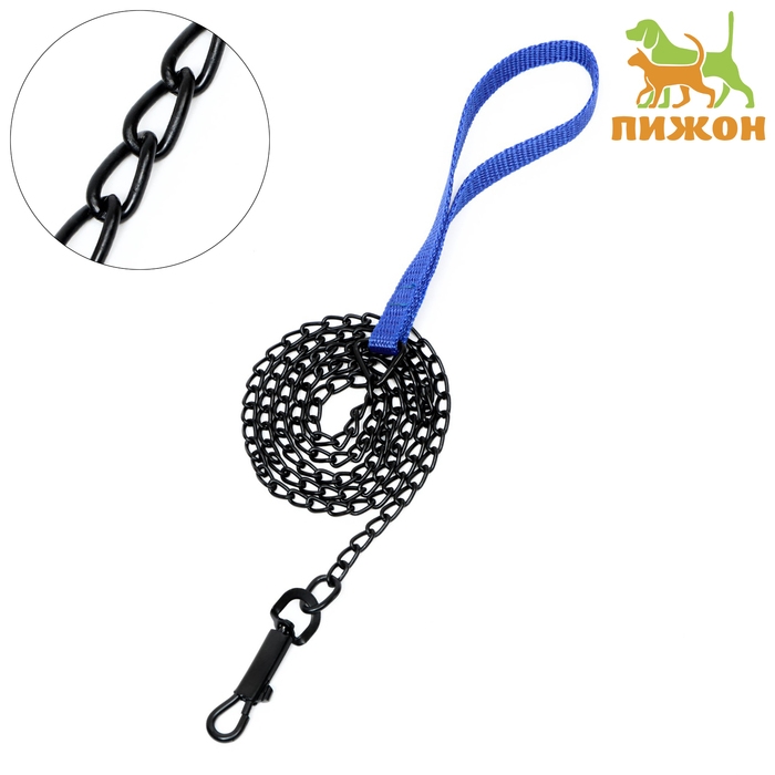 Поводок должен быть прочным и надежным. Металлический поводок полностью соответствует этим требованиям, плюс ко всему это красивый и износостойкий аксессуар. Поводок состоит из хромированной цепочки и мягкой нейлоновой ручки. Ручка прошита армированной нитью, удобно располагается в ладони и не натирает при натяжении. Поводок оснащен усиленным карабином. Длина поводка: 120 см; Ширина: