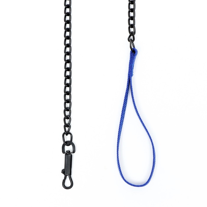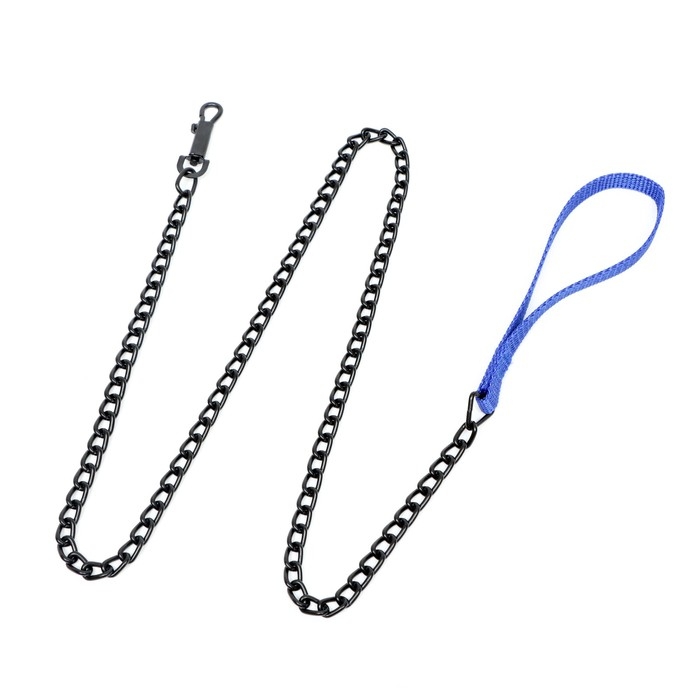 Поводок должен быть прочным и надежным. Металлический поводок полностью соответствует этим требованиям, плюс ко всему это красивый и износостойкий аксессуар. Поводок состоит из хромированной цепочки и мягкой нейлоновой ручки. Ручка прошита армированной нитью, удобно располагается в ладони и не натирает при натяжении. Поводок оснащен усиленным карабином. Длина поводка: 120 см; Ширина: