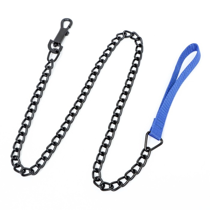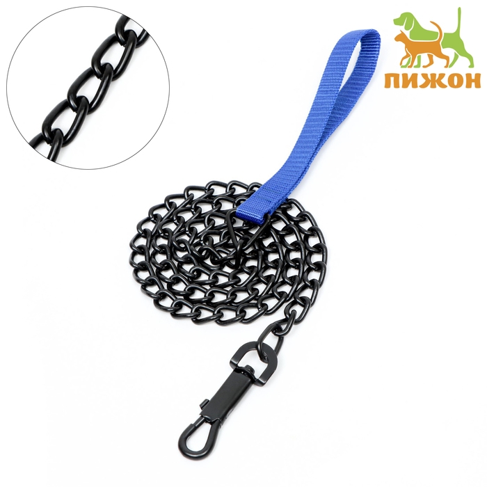 Поводок должен быть прочным и надежным. Металлический поводок полностью соответствует этим требованиям, плюс ко всему это красивый и износостойкий аксессуар. Поводок состоит из хромированной цепочки и мягкой нейлоновой ручки. Ручка прошита армированной нитью, удобно располагается в ладони и не натирает при натяжении. Поводок оснащен усиленным карабином. Длина поводка: 120 см; Ширина: