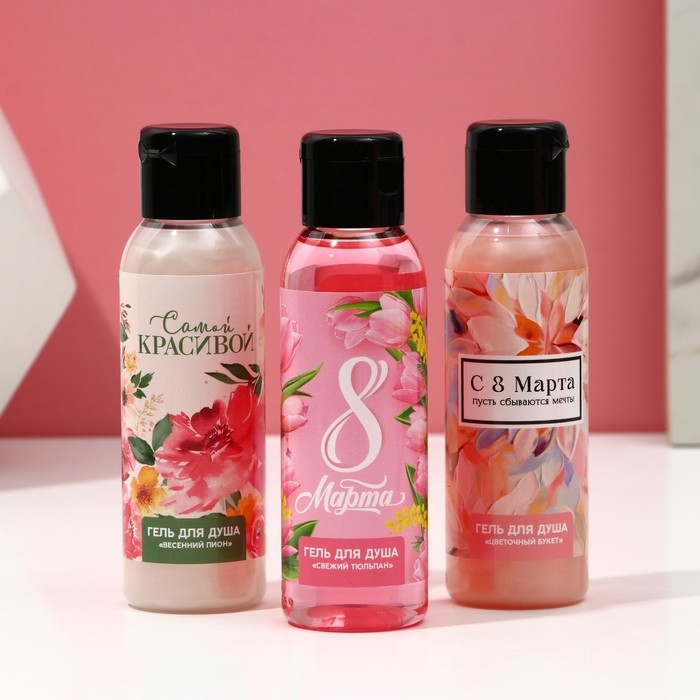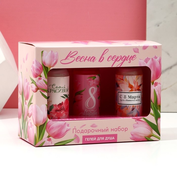 Подарочный набор косметики «Весна в сердце!», гель для душа 3 х 100 мл, ЧИСТОЕ СЧАСТЬЕ