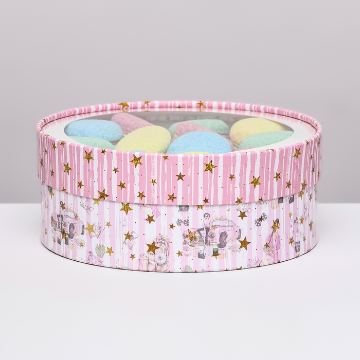 Коробка для макарун тубус с окном " Мода " 21 х 21 х 7 см