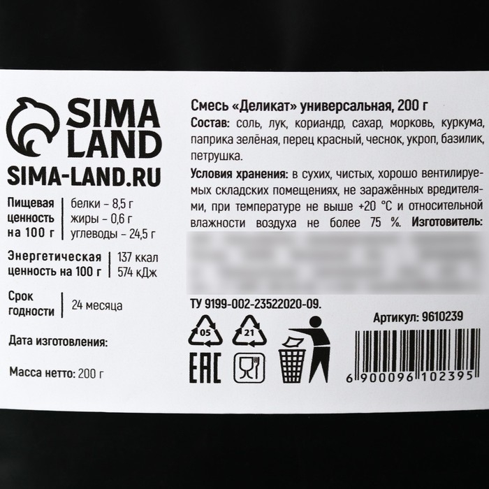 Состав: соль, лук, кориандр, сахар, морковь, куркума, паприка зелёная, перец красный, чеснок, укроп, базилик, петрушка.