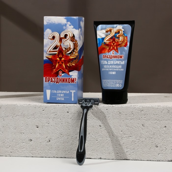 Подарочный набор косметики «С праздником!», гель для бритья 110 мл и бритва, HARD LINE