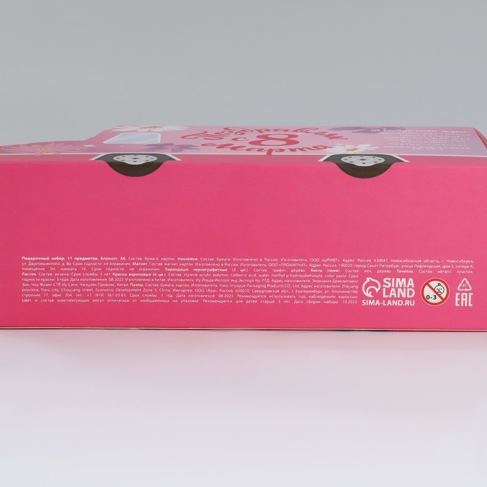 Блокнот, Карандаши, Кисть, Краски, Ластик, Магнит, Наклейки, Пазлы, Точилка