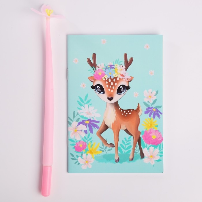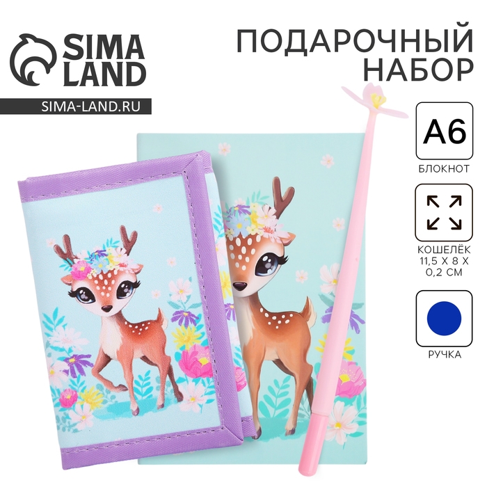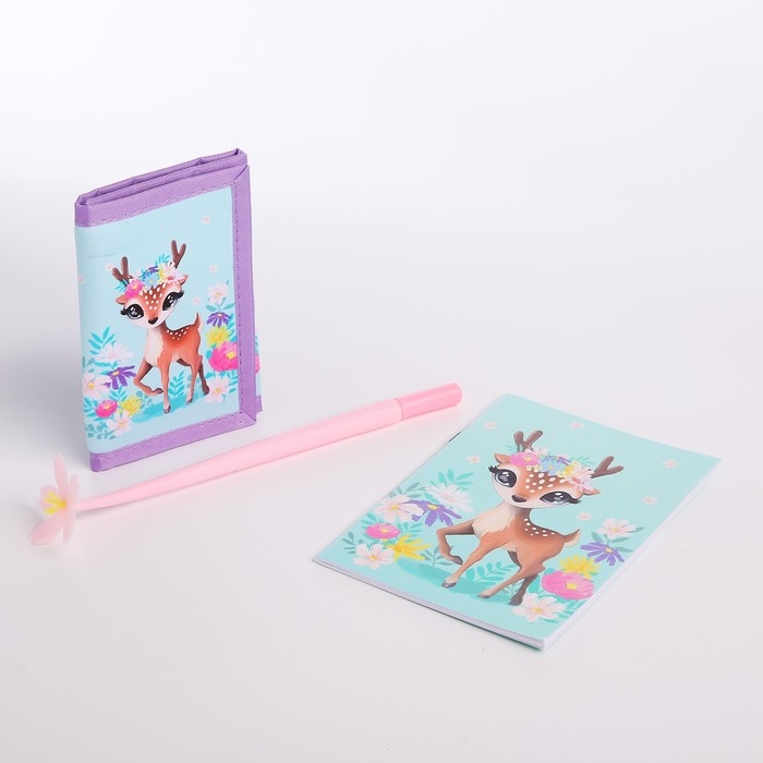 Подарочный набор для девочки «Оленёнок», кошелёк, блокнот, ручка