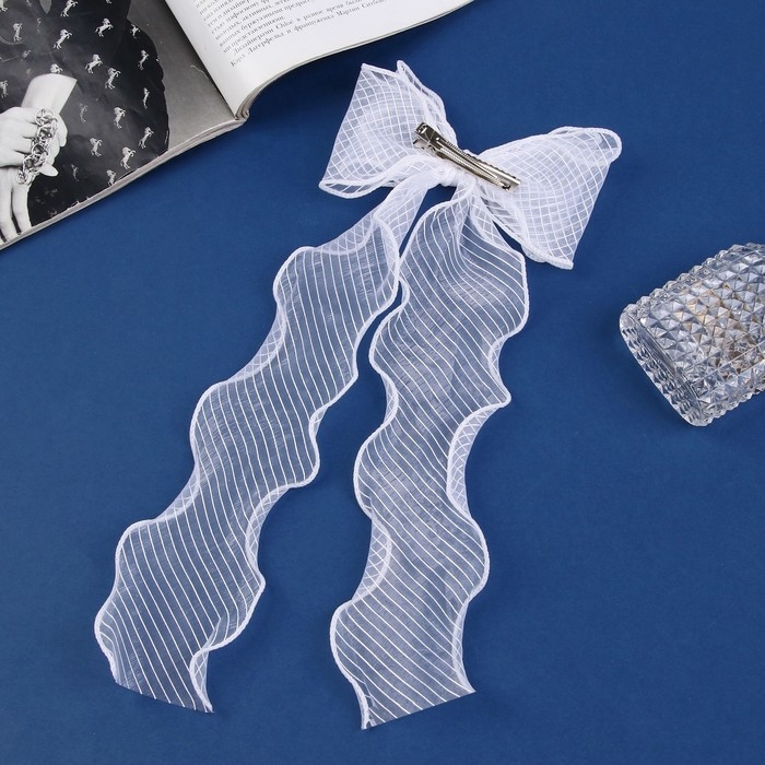 Зажим для волос "Школьница" бантик 12х30 см, белый в полосочку