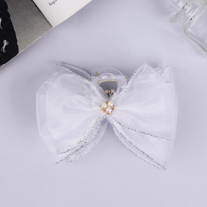 Краб для волос "Школьница" 12х9 см ,белый с бусинкой