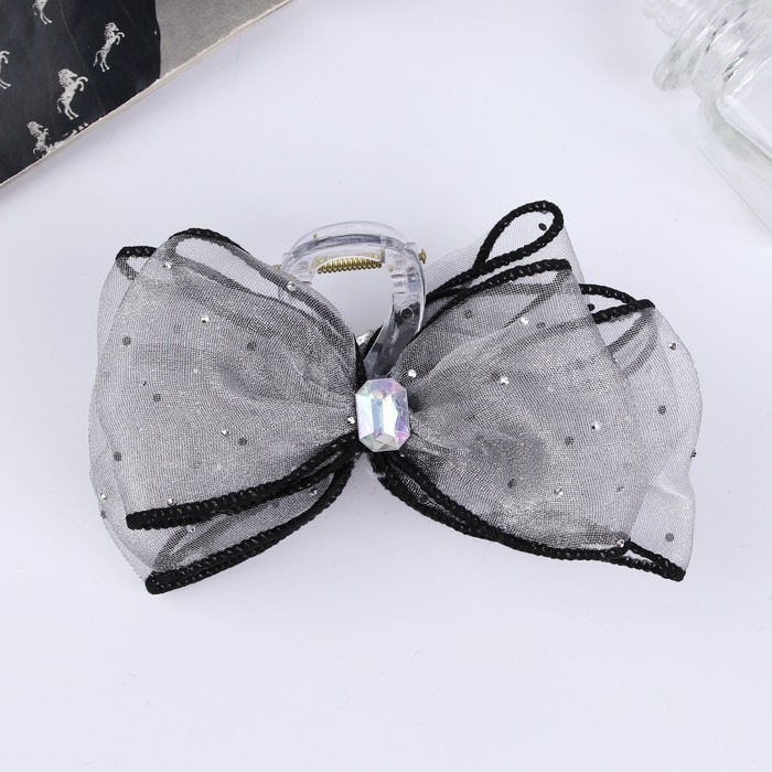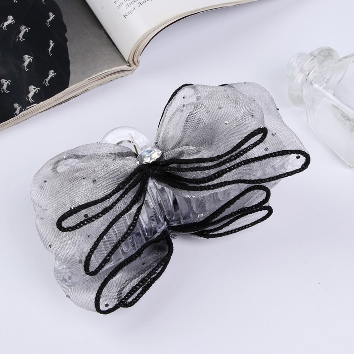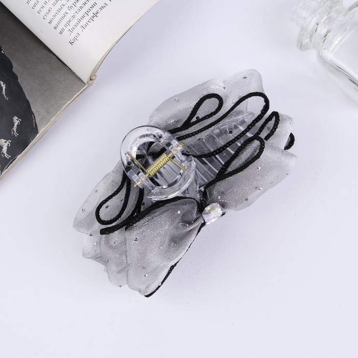 Краб для волос "Школьница" 12х9 см, серый с кантиком