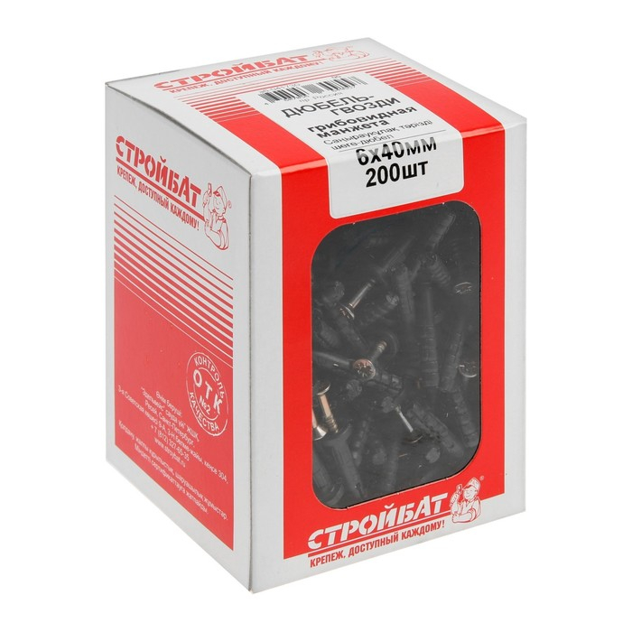Дюбель-гвоздь "Стройбат", полипропиленовый, грибовидная манжета, 6x40 мм, 200 шт