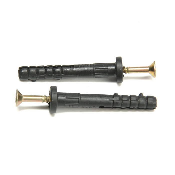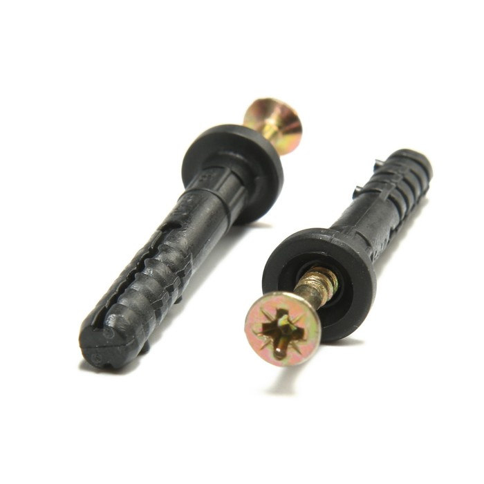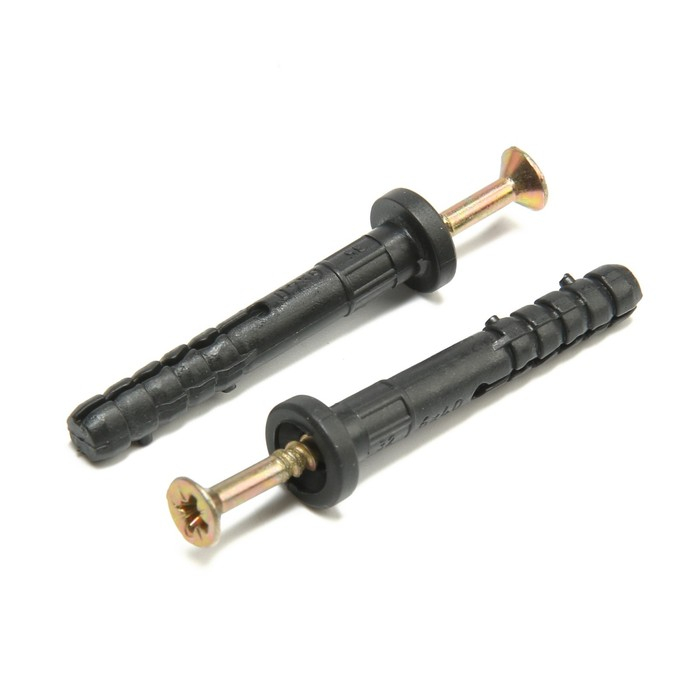 Дюбель "Стройбат" состоит из дюбеля с двухсегментной распорной частью с грибовидным бортиком, предотвращающим проваливание дюбеля в монтажное отверстие, и гвоздя с ударной резьбой.