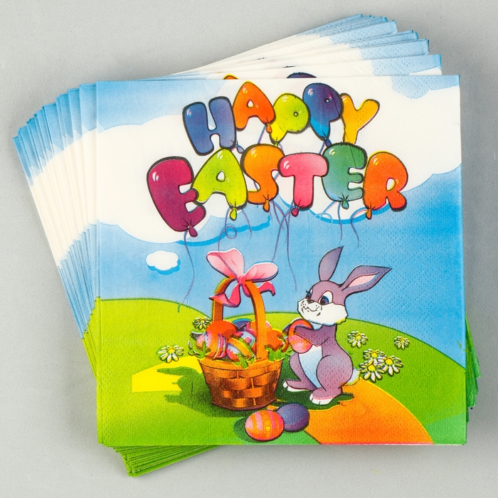 Салфетки бумажные «Счастливой Пасхи» кролик с корзинкой, 33х33 см, набор 20 шт.