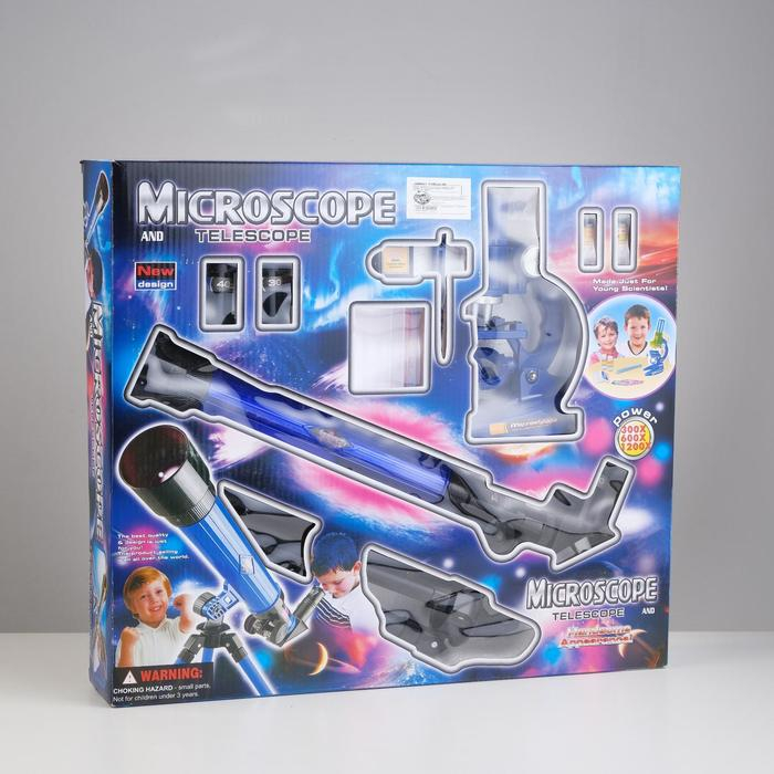 Набор: телескоп настольный, три линзы: х20, 30, 40 + микроскоп, увеличение х300, 600, 1200