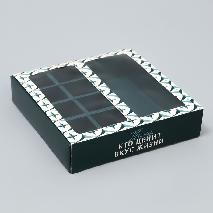 Коробка под 8 конфет и шоколад с ячейками, кондитерская упаковка «Тому, кто ценит вкус жизни» 18 х 18 х 4 см