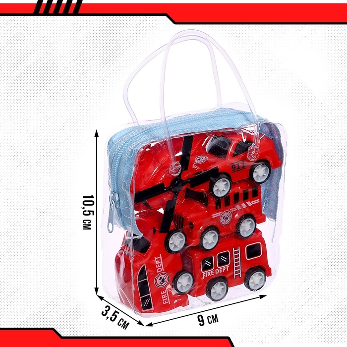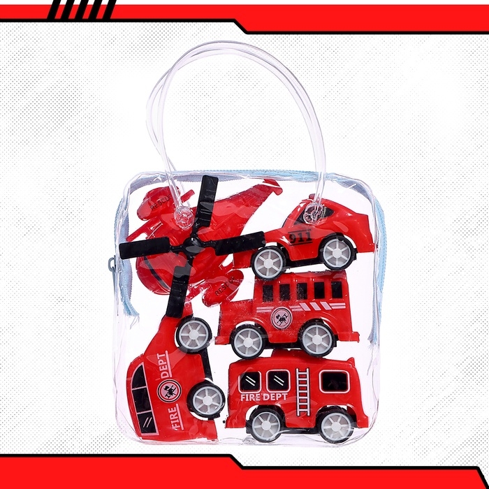 Набор машин «Пожарная», 4 машинки и вертолёт, инерция