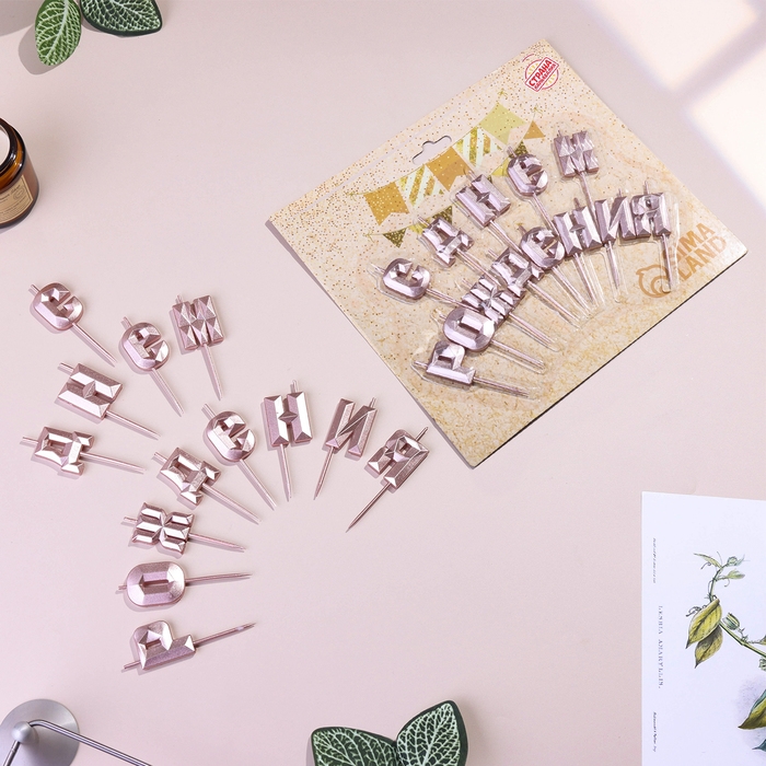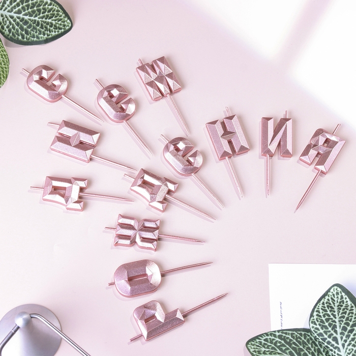 Набор свечей для торта "С Днём Рождения", розовое золото