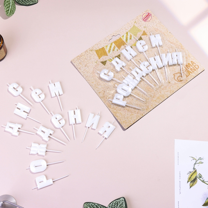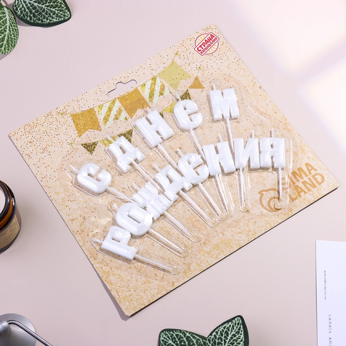 Набор свечей для торта "С Днём Рождения", жемчужный