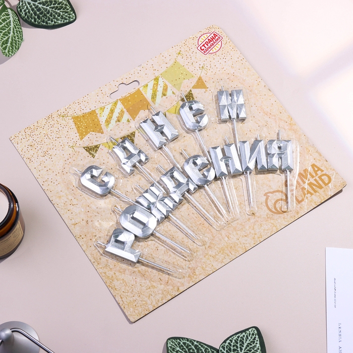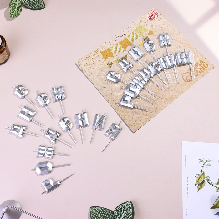 Набор свечей для торта "С Днём Рождения", серебряный
