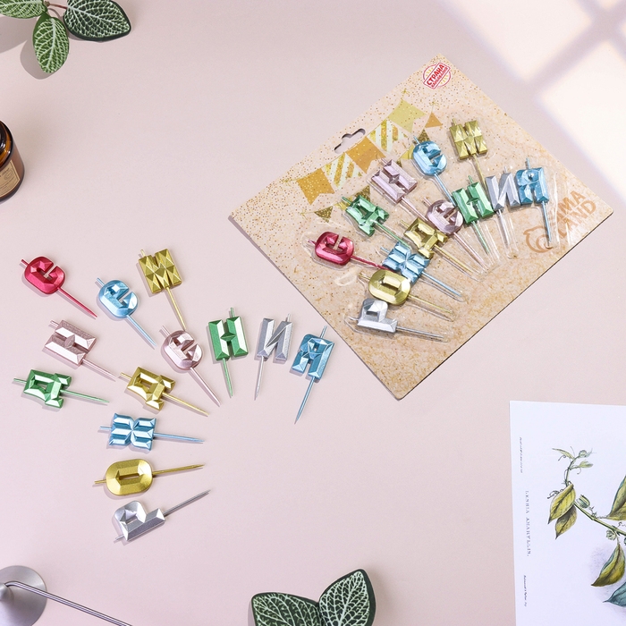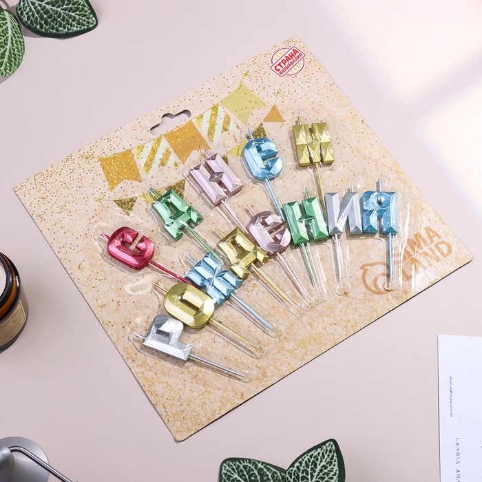 Набор свечей для торта "С Днём Рождения", разноцветные