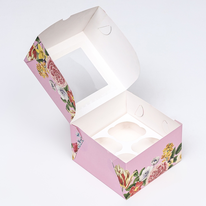 Коробка для 4 капкейков с окном , "Презент", 16 х 16 х 10 см