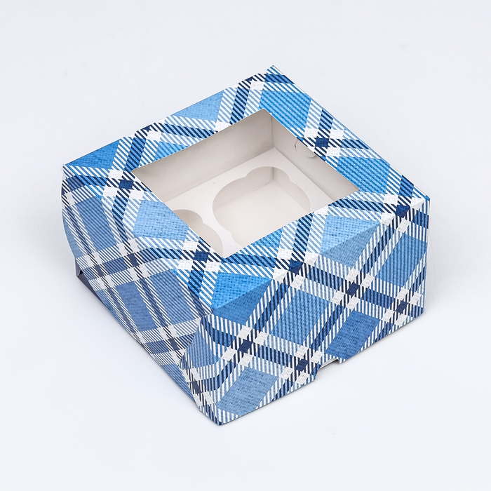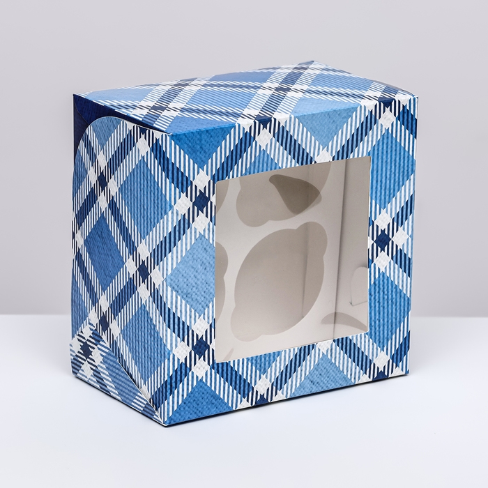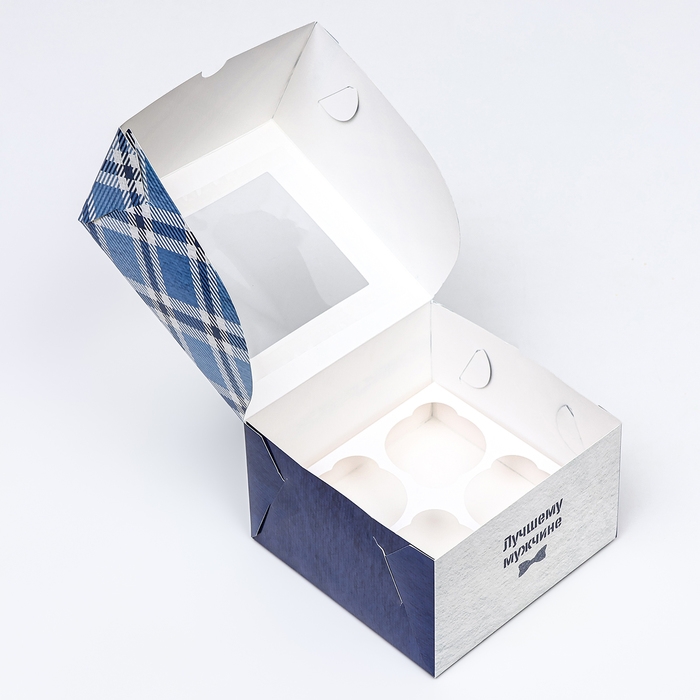 Коробка для 4 капкейков с окном , "Лучшему мужчине", 16 х 16 х 10 см