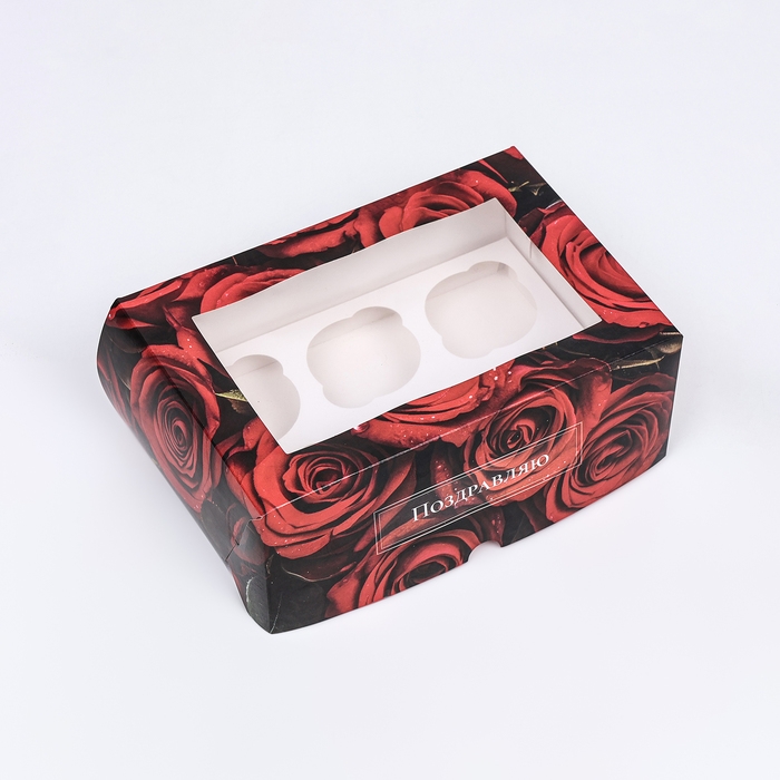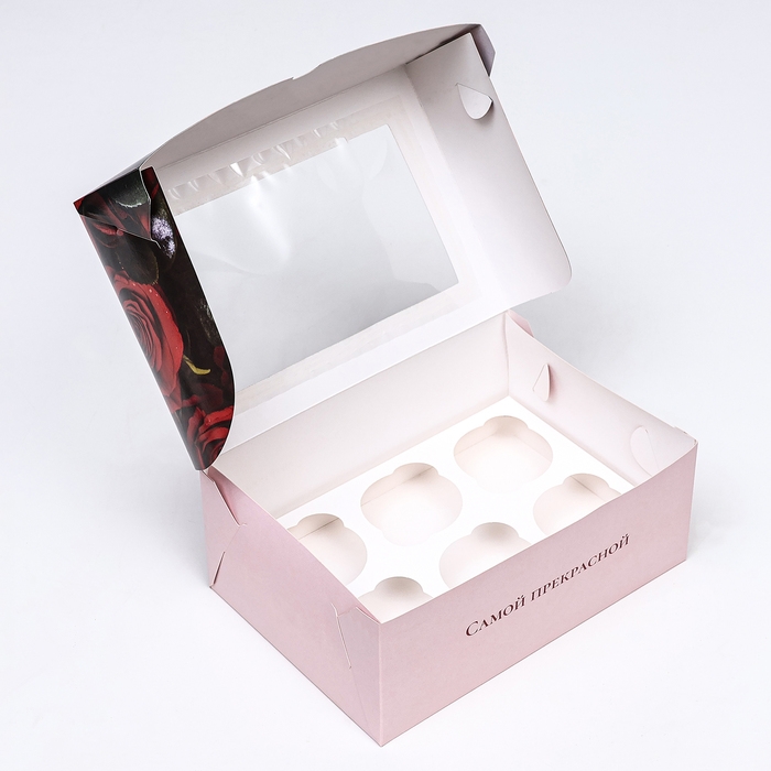 Коробка для 6 капкейков с окном , "Розы", 25 х 17 х 10 см