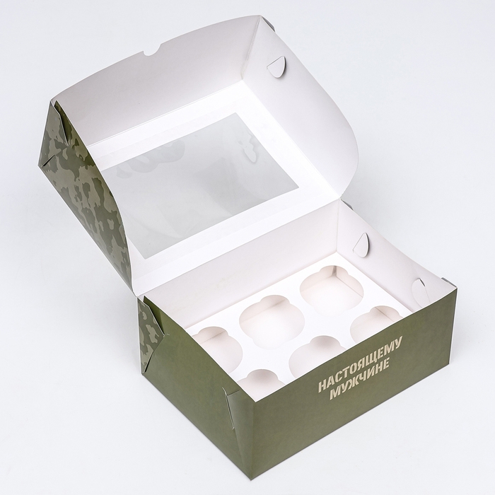 Коробка для 6 капкейков с окном , "Камуфляж", 25 х 17 х 10 см