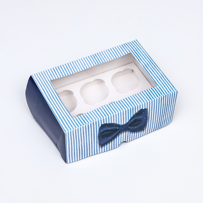 Коробка для 6 капкейков с окном , "длястоящему мужчине", 25 х 17 х 10 см