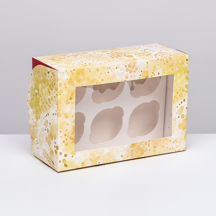 Коробка для 6 капкейков 23,5 х 16 х 10 , Золотая