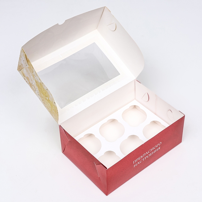 Коробка для 6 капкейков, белая 23,5 х 16 х 14 см