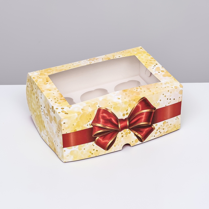 Коробка для 6 капкейков с окном , "Бант", 25 х 17 х 10 см