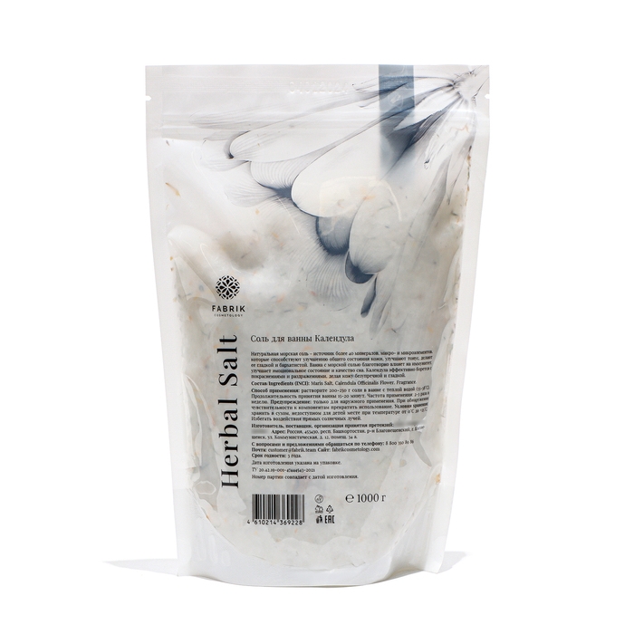 Соль для ванны в пакете Fabrik Cosmetology с календулой – это уникальный способ подарить вашей коже заботу и расслабление во время водных процедур. Натуральная морская соль, богатая более чем 40 минералами, макро- и микроэлементами, станет невероятным источником ухода за вашей кожей.