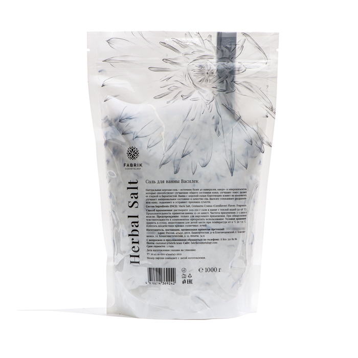 Соль для ванны в пакете Fabrik Cosmetology с васильком – это уникальный способ заботы о вашей коже и наслаждения расслабляющими водными процедурами. Натуральная морская соль, богатая более чем 40 минералами, макро- и микроэлементами, обеспечивает комплексный уход за кожей, делая ее более мягкой, гладкой и ухоженной.