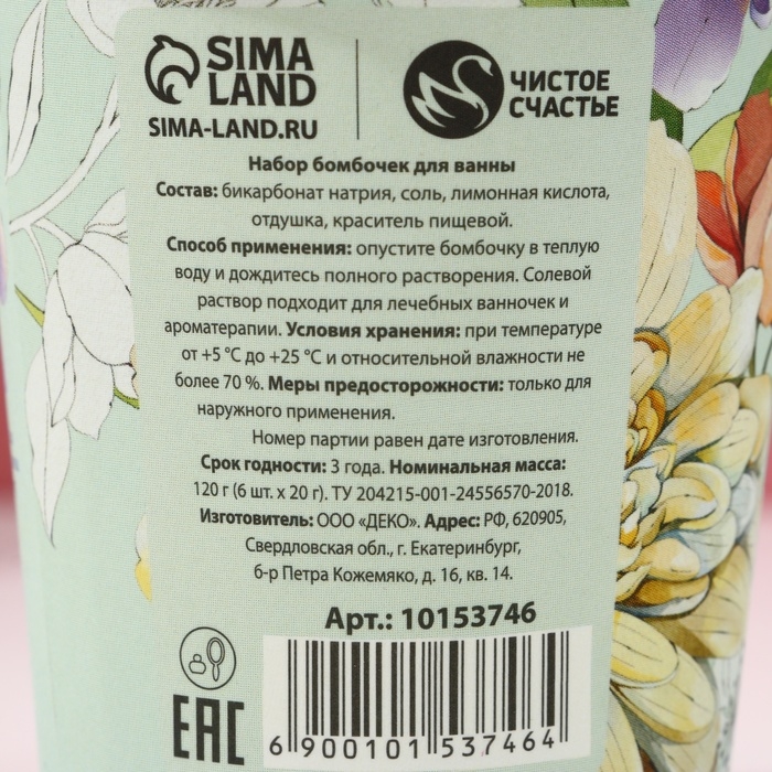Подарочный набор косметики «Самой нежной», бомбочки для ванны 6 х 20 г, ЧИСТОЕ СЧАСТЬЕ
