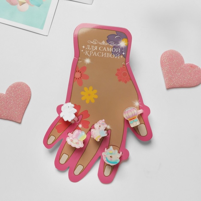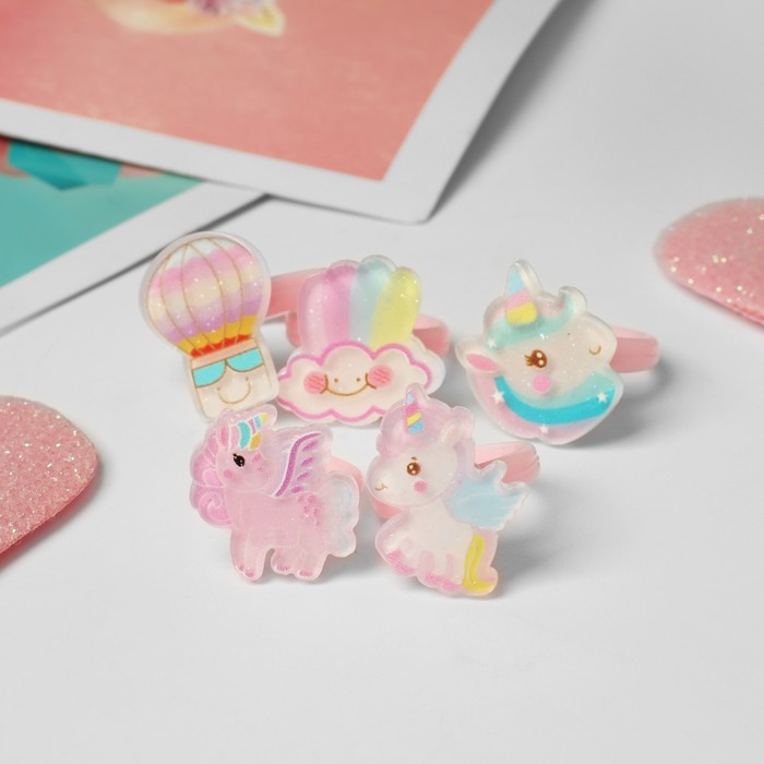 Набор детских колец «Выбражулька» 5 шт., счастье единорожки, цветные, безразмерные
