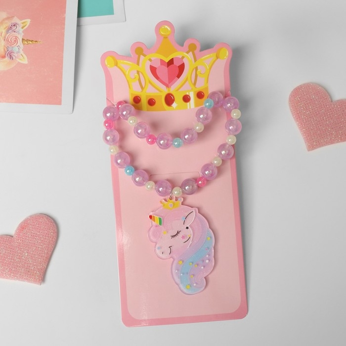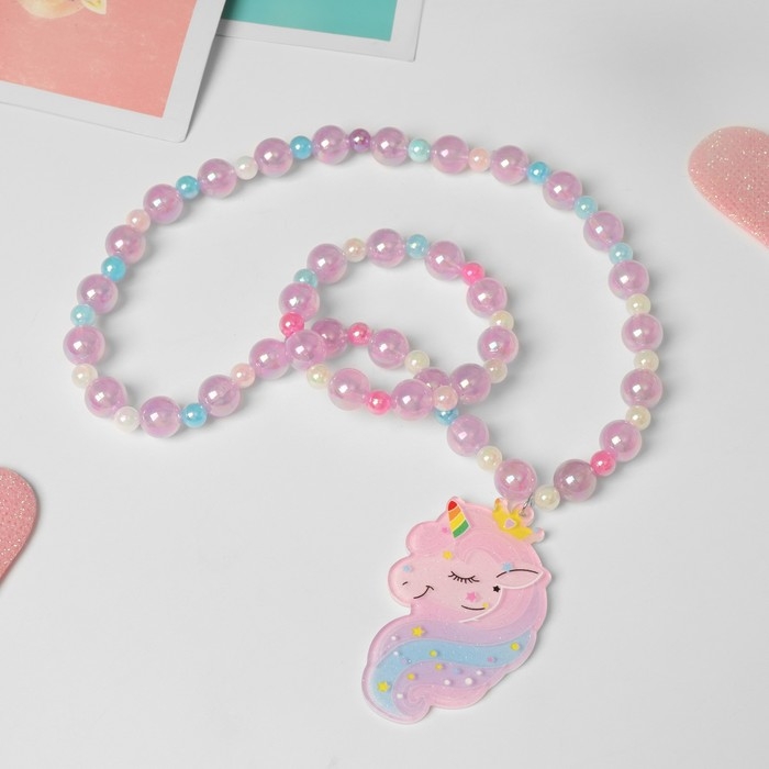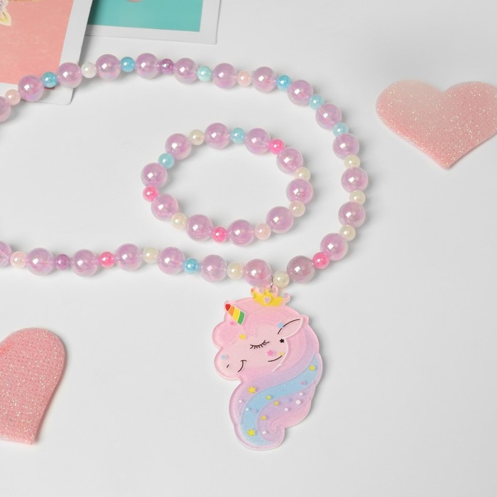 Набор детский «Выбражулька» 2 предмета: браслет, кулон, волшебный единорог, цвет сиреневый