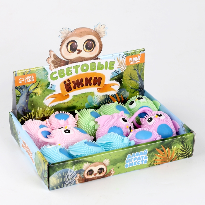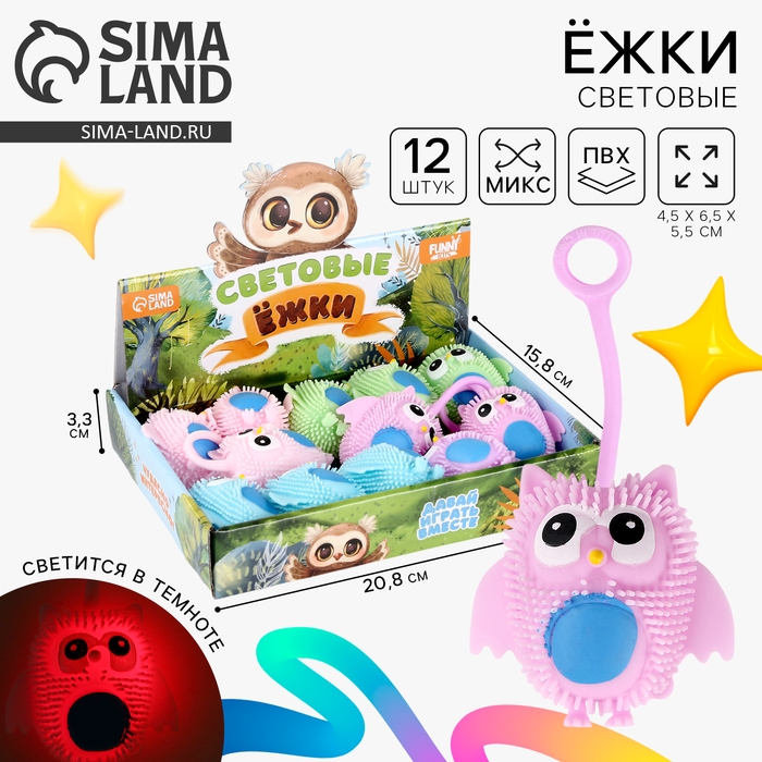 Мяч детский резиновый ёжка световой «Совушка», цвета МИКС , в шоубоксе