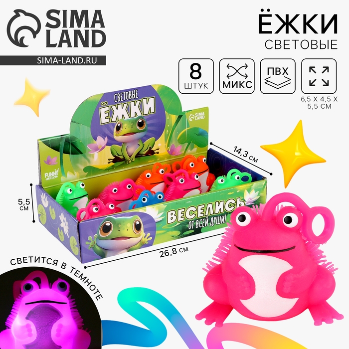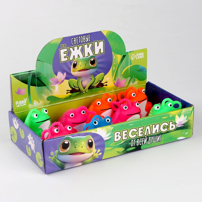Мяч детский резиновый ёжка световой «Лягушка», цвета МИКС , в шоубоксе