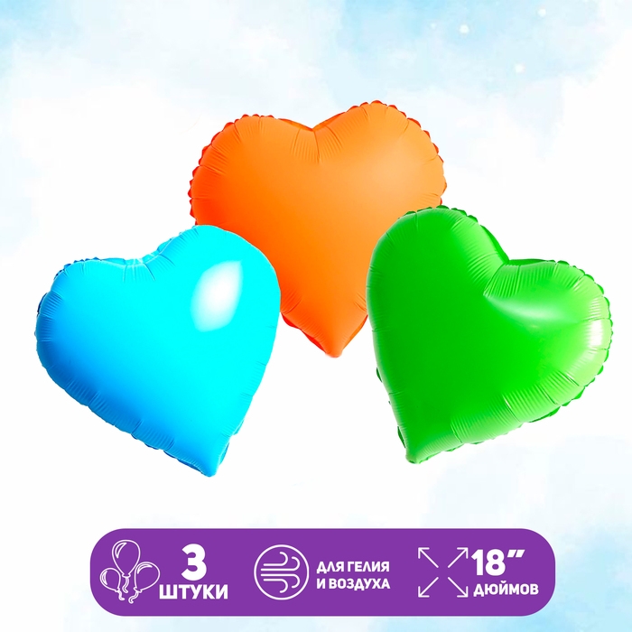 Набор шаров «Сердца неон», полимер, 3 шт.