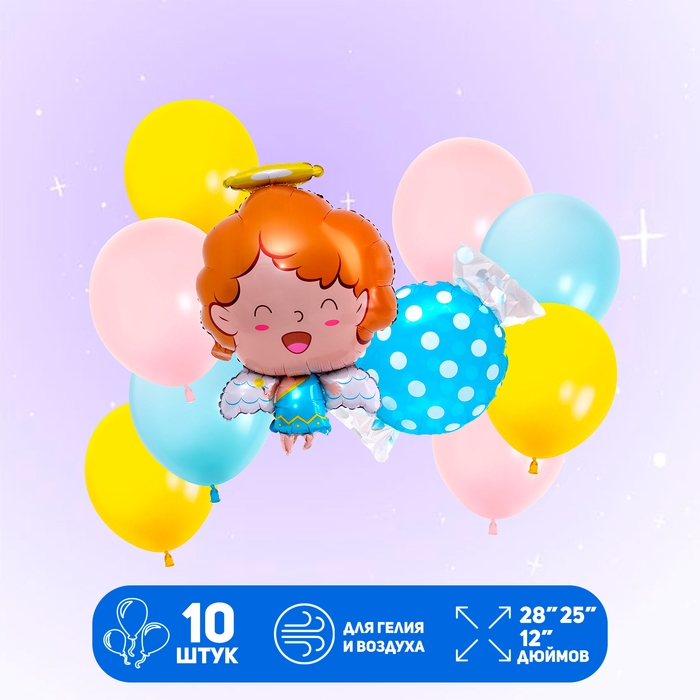 Набор шаров «Ангелочек небесный», фольга, латекс, 10 шт.