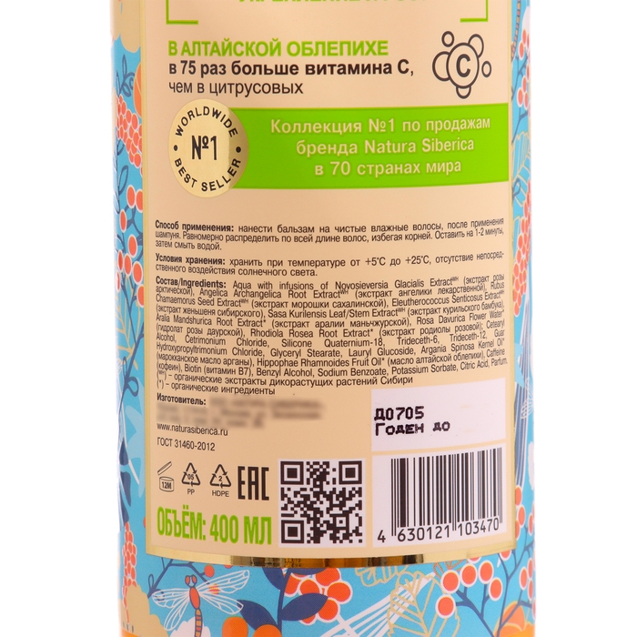 Бальзам облепиховый Natura Sibericа, для тонких и ослабленых волос, 400 мл