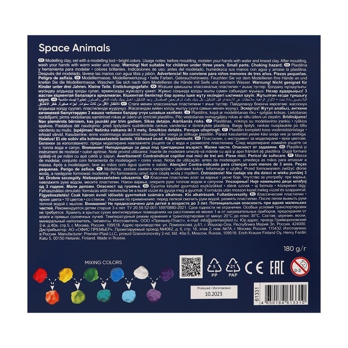 Пластилин 10 цветов, 180 г, ErichKrause "Kids Space Animals", со стеком, в картонной упаковке