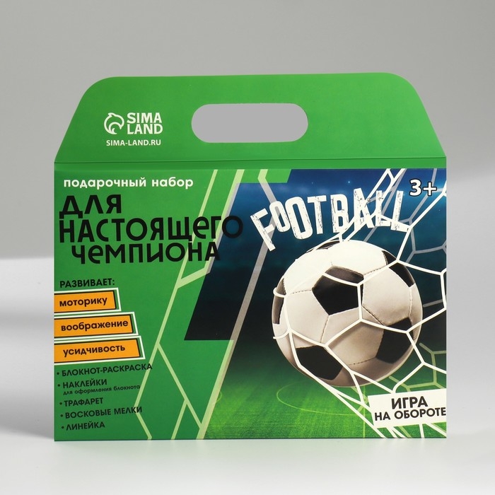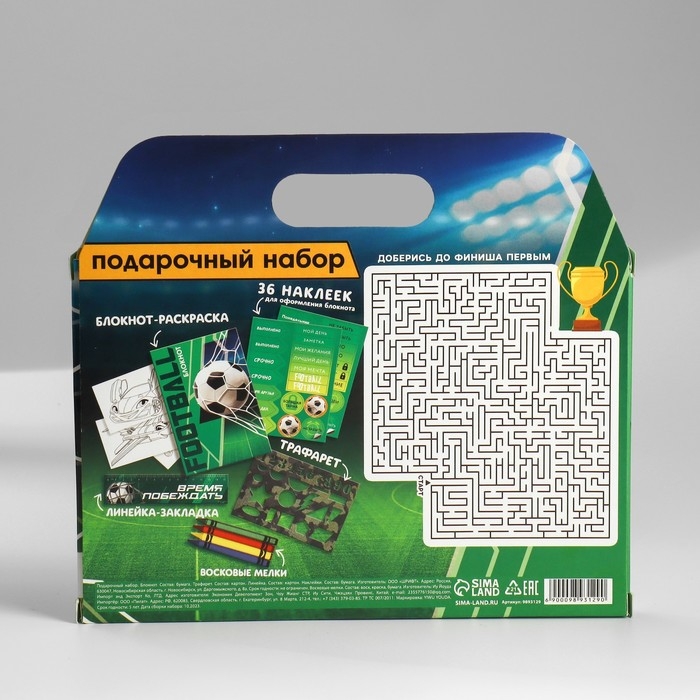 Подарочный набор блокнот-раскраска, трафарет, наклейки и восковые мелки «Футбол»