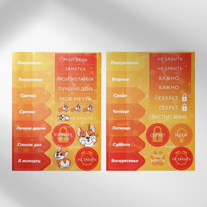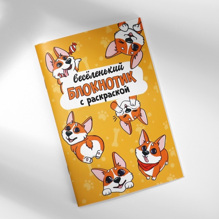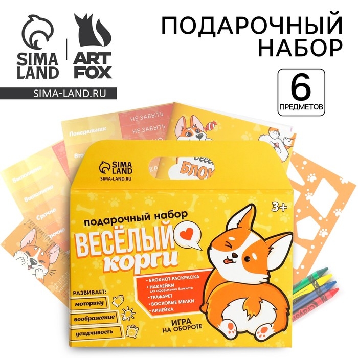 Подарочный набор блокнот-раскраска, трафарет, наклейки и восковые мелки «Веселый корги»